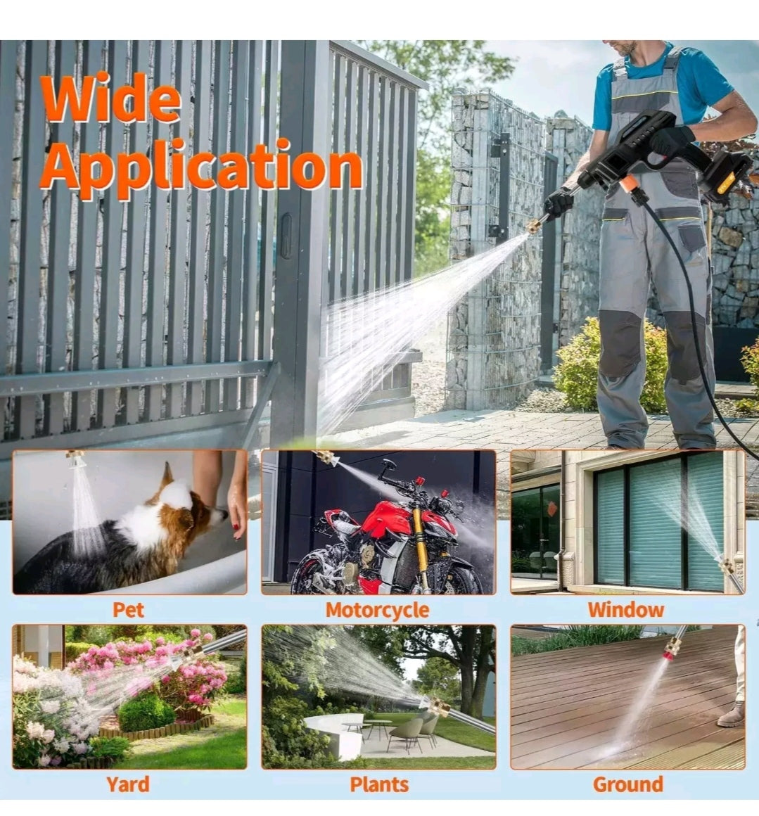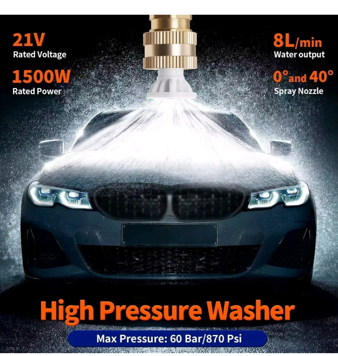 1. Leistungsstarker Lithium-Ionen-Hochdruckreiniger: Der kabellose elektrische Reiniger verfügt über einen leistungsstarken 1500-W-Motor, der bis zu 215 l/h sprühen kann. Dies ist ein wirklich tragbarer elektrischer Reiniger, mit dem Sie alle Ihre Außenbereiche und Geräte einfach und schnell reinigen können.