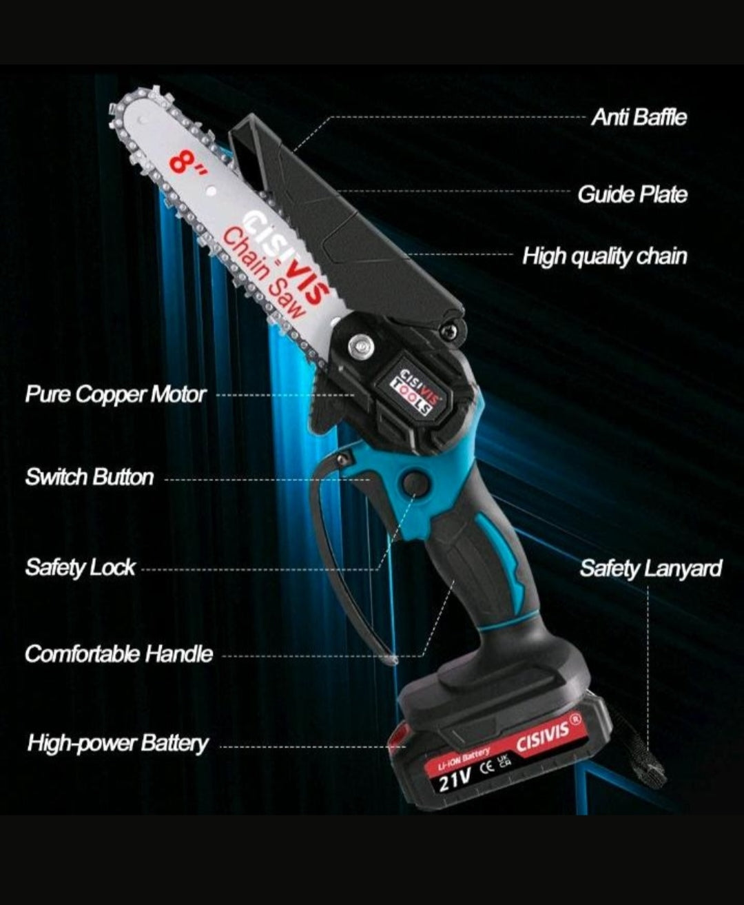 *2024 Verbesserte kabellose 6+8-Zoll-Kettensäge mit ergonomischem, leichtem Design und hoher Leistung, was sie zum perfekten Werkzeug für den landwirtschaftlichen, Garten- und Heimgebrauch macht.
