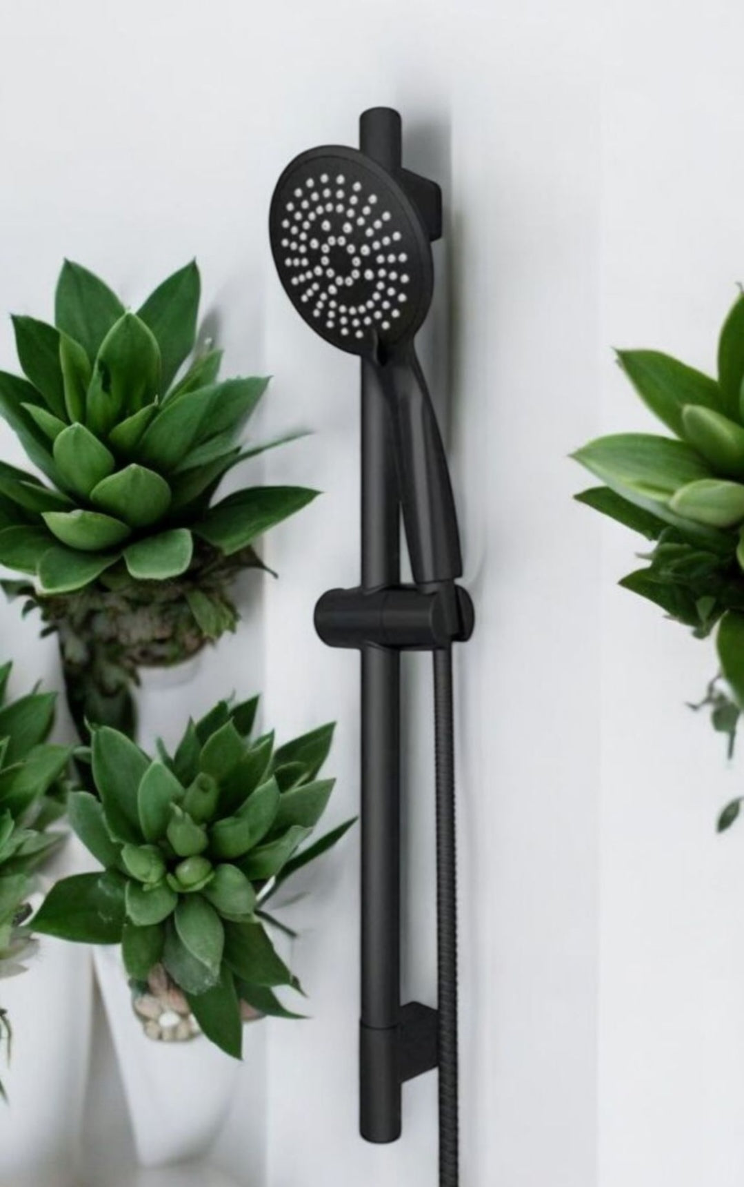 Edles Design: Das tiefe Mattschwarz der Duschgarnitur setzt einen stilvollen Akzent und verleiht Ihrem Bad eine luxuriöse Note.