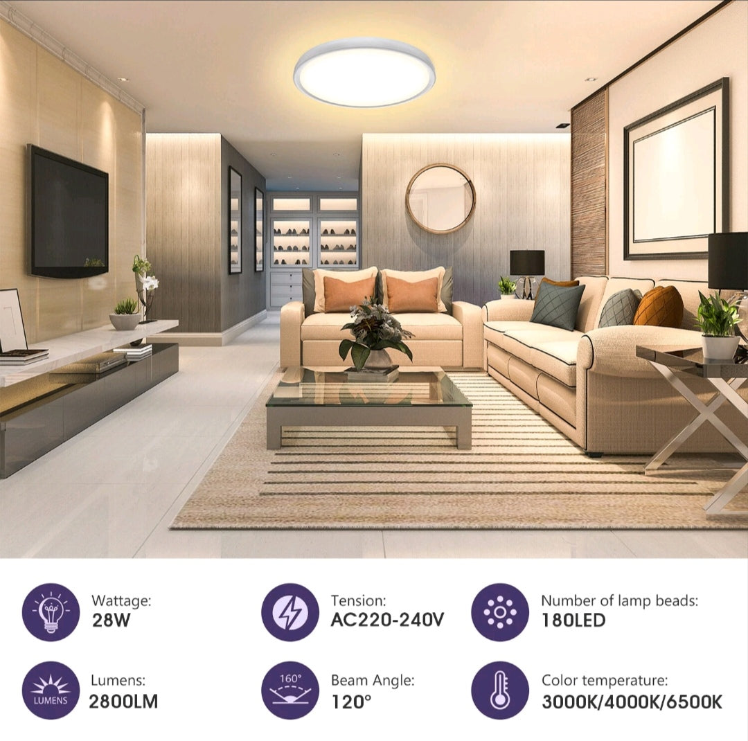 3.Natürliches weißes Licht und Augenpflege Deckenlicht bringt Ihnen das natürliche Licht am nächsten. Verwenden Sie ein qualifiziertes flammhemmendes PC-Material und schützen Sie die Augen mit der Lichtdurchlässigkeit des PMMA-Lampenschirms und der leichten visuellen Gleichmäßigkeit vor blendenden und blendenden Lichtern. Keine UV- oder IR-Strahlung.