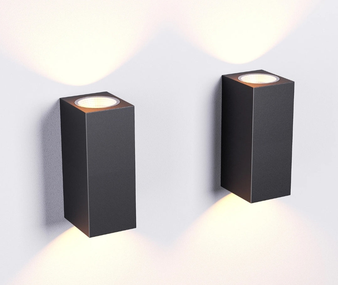 2 x LED Wandleuchte aussen, inklusive 4x GU10-Leuchtmittel mit je 5 Watt. Nicht dimmbare schwarze Außenleuchte