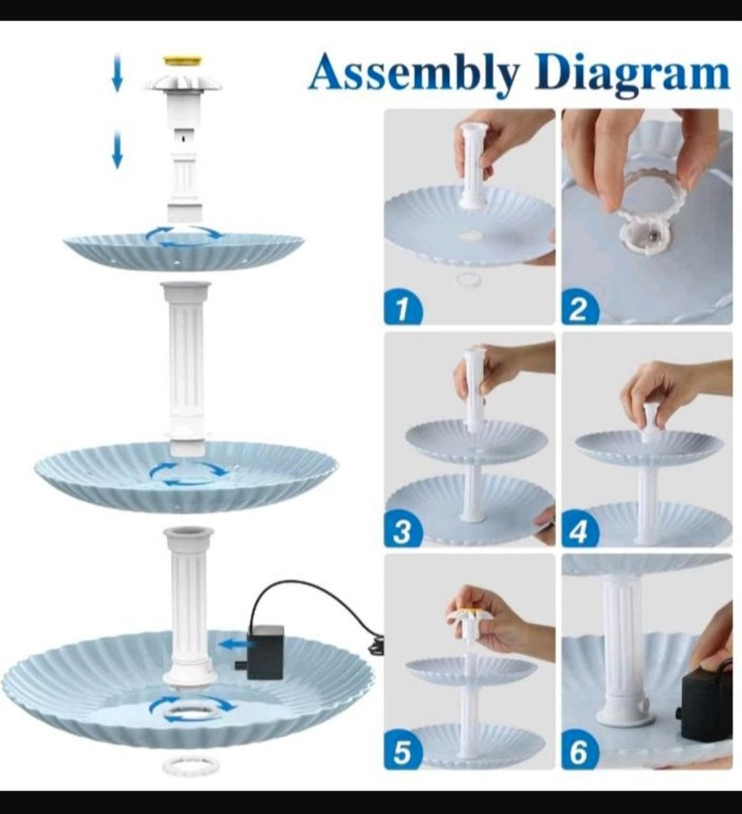 3,5 W Solar-Springbrunnenpumpe mit 3 Schichten Vogeltränke, Vogeltränke Kombi-Set, einfach zu montieren und zu reinigen. Die Umfänge der Scheiben sind unterschiedlich, und die großen,