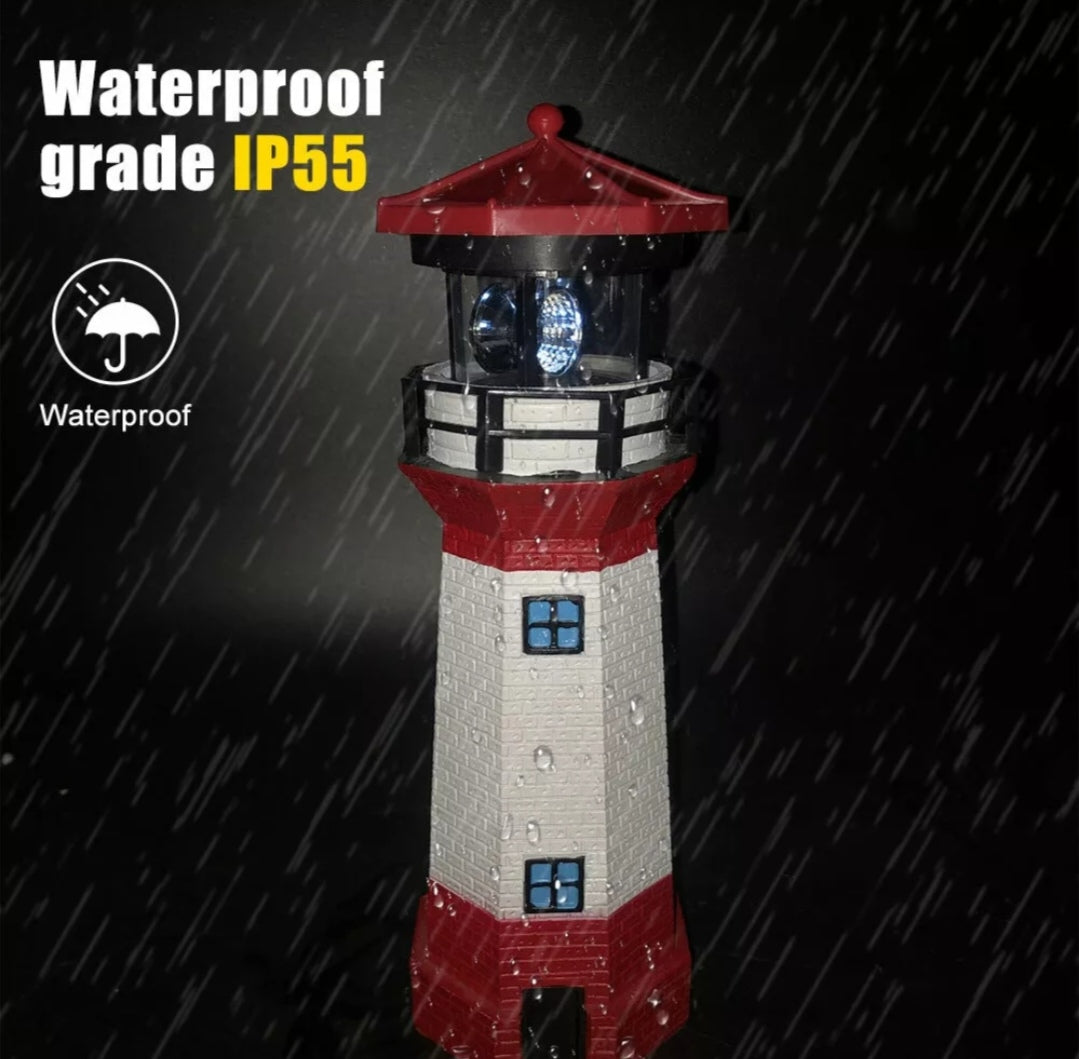 6. Der Leuchtturm ist mit einem Solarpanel und einer wiederaufladbaren Batterie ausgestattet. Er absorbiert tagsüber Sonnenlicht und lädt sich automatisch auf. Nach Einbruch der Dunkelheit leuchtet die Lampe automatisch auf. Es ist nicht notwendig, anzuschließen, was energiesparend und umweltfreundlich ist.