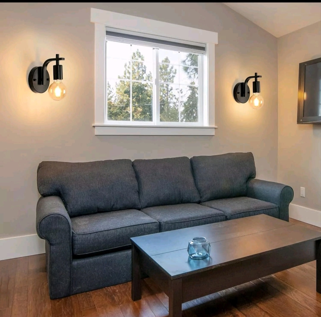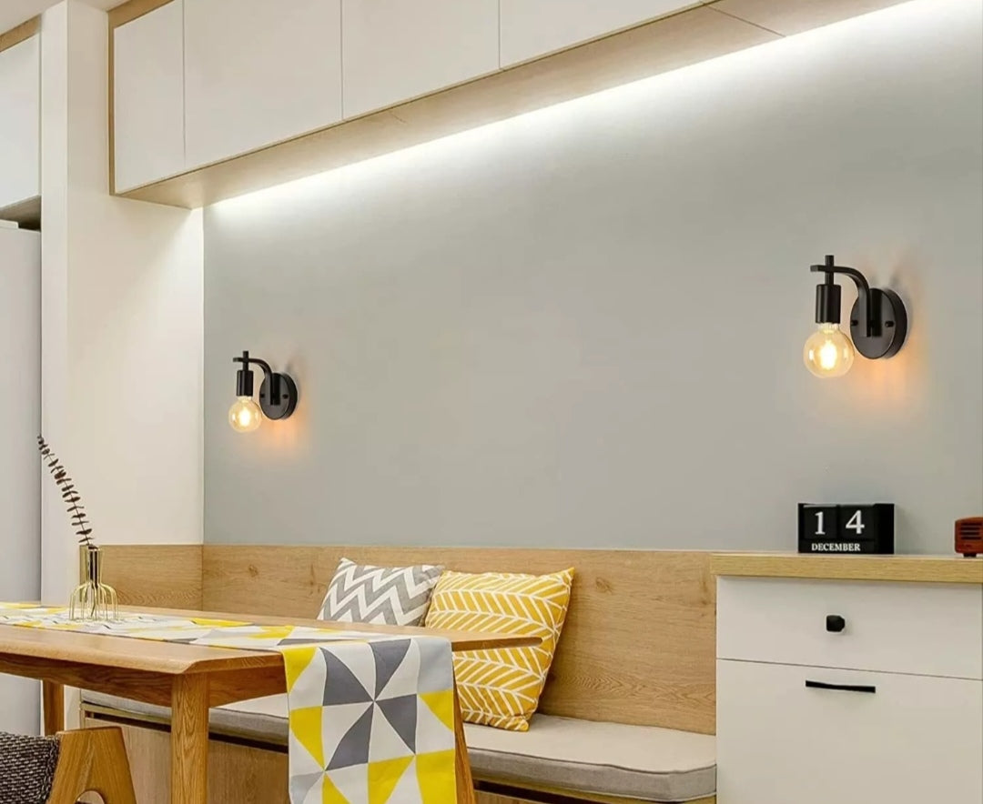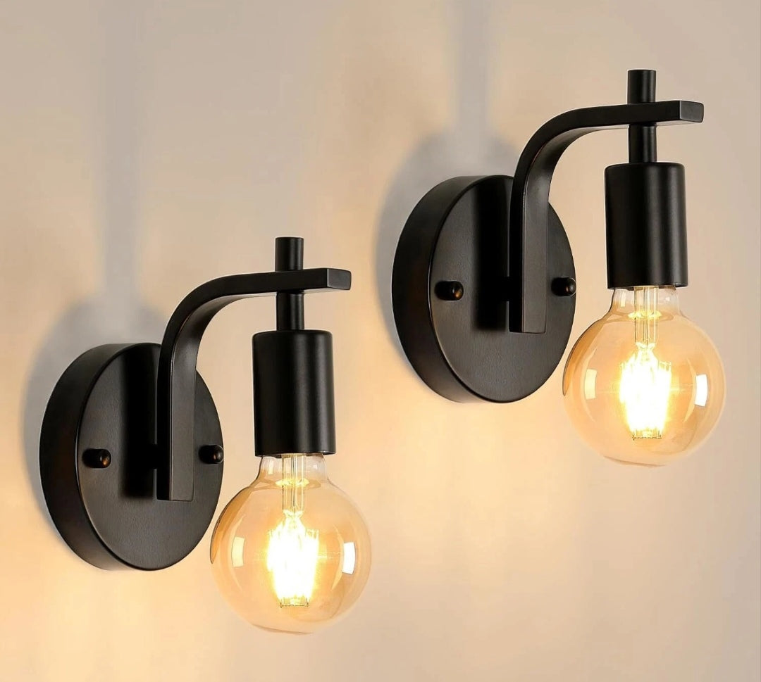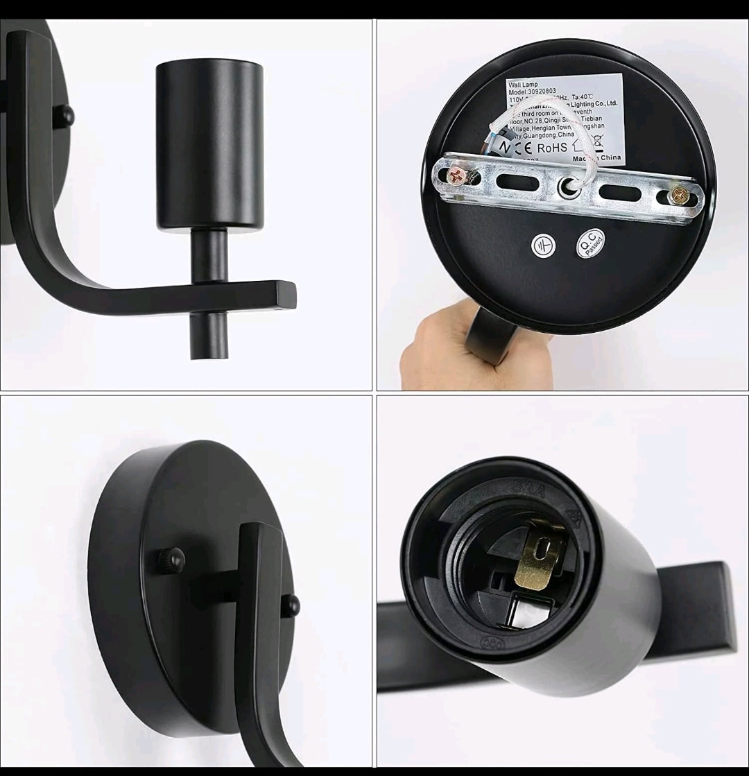 【Spezifikationen】2 Stück Wandleuchte innen (Glühbirnen nicht enthalten). Größe: 15*12*17cm. Spannung: AC: 220 V-240 V. Max Leistung: 60 W. Farbe: schwarz. Gewicht: 720g